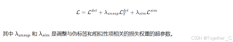 我们的完整损失将伪标记检测损失(公式 1)与相似性损失(公式 3)结合起来