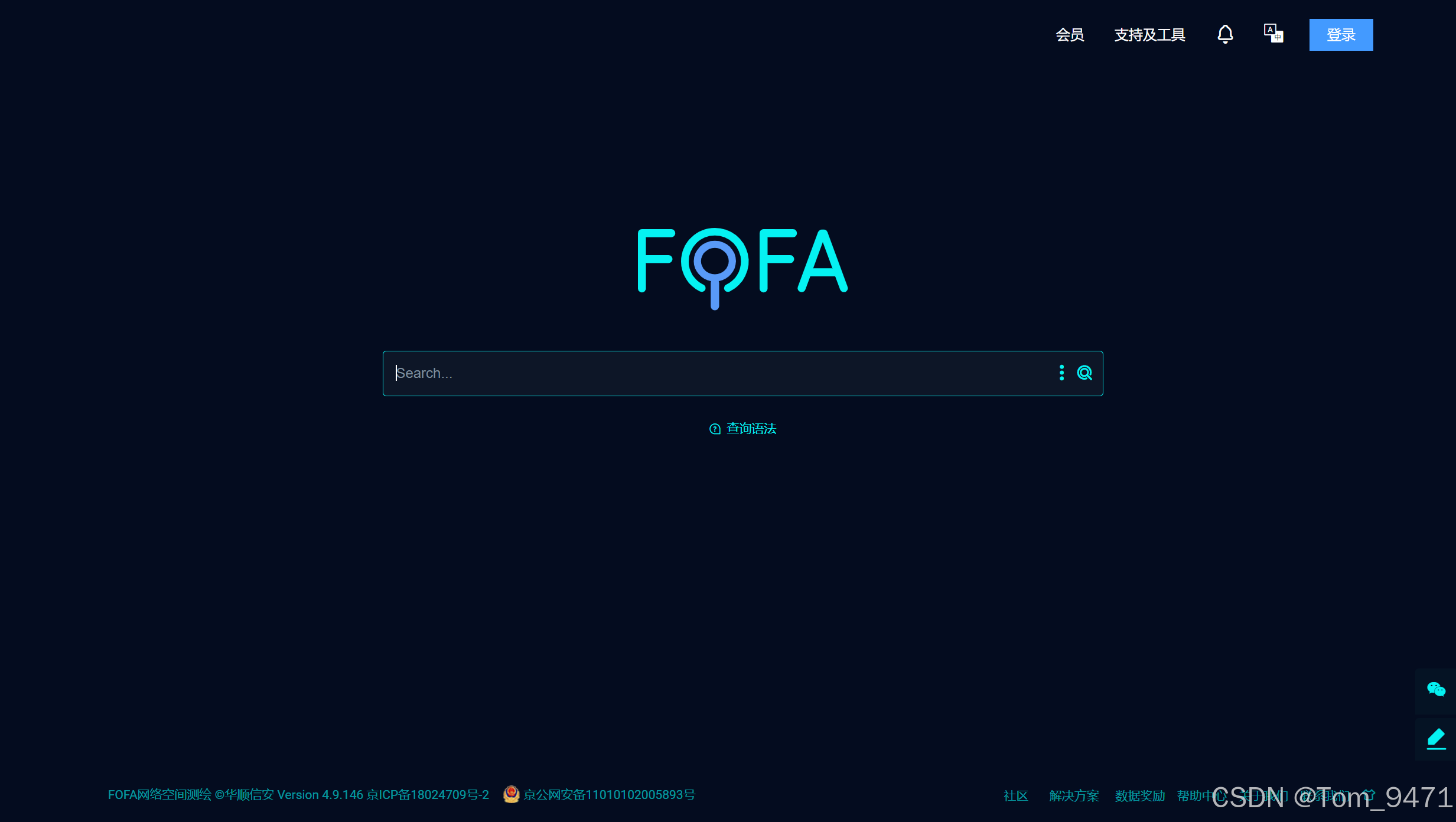 3. FOFA:一个中文的网络空间安全搜索引擎,提供主机和服务器的搜索。(https://fofa.info/)