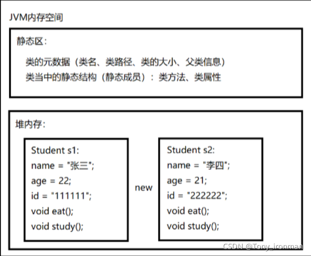 步骤3:为了得到类的元信息,必须在为对象开辟内存空间之前,先将类信息加载进入内存静态区当中,类的元信息也就携带了静方法和静态全局变量;
