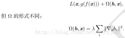收缩自编码器 (Rifai et al.,2011a,b) 在编码 h = f(x) 的基础上添加了显式的正则项,鼓励 f 的导数尽可能小:
