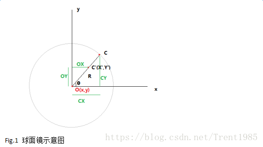 球面镜整体表现效果是在半径R的圆形范围内,越接近圆心的地方,挤压的越厉害,出现挤压变形的效果。