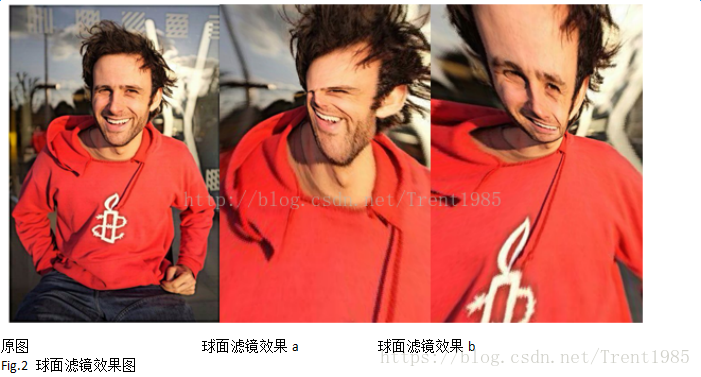 这里以球面滤镜(哈哈镜)特效为例来讲解一个几何滤镜的实现过程。