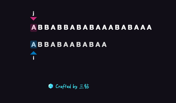 这个匹配逻辑我们 i 和 j 就都是需要从下标 0 开始了。