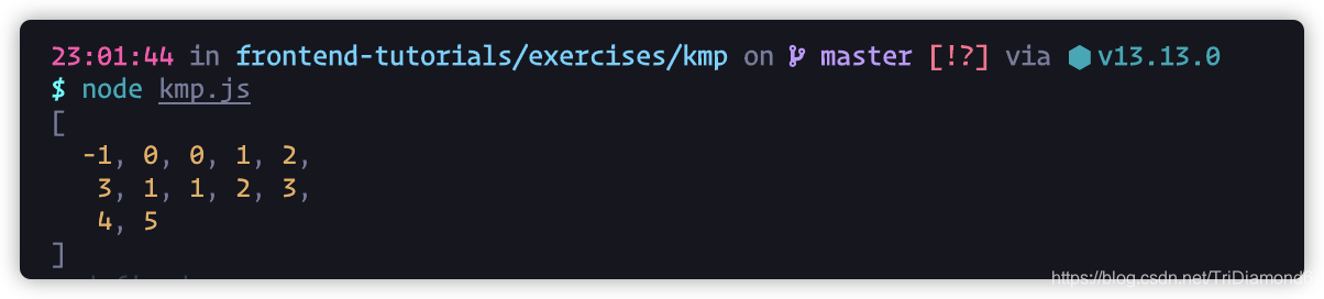 这里我们调用一下 kmp 函数来试试,最终的 next 数组是不是对的。