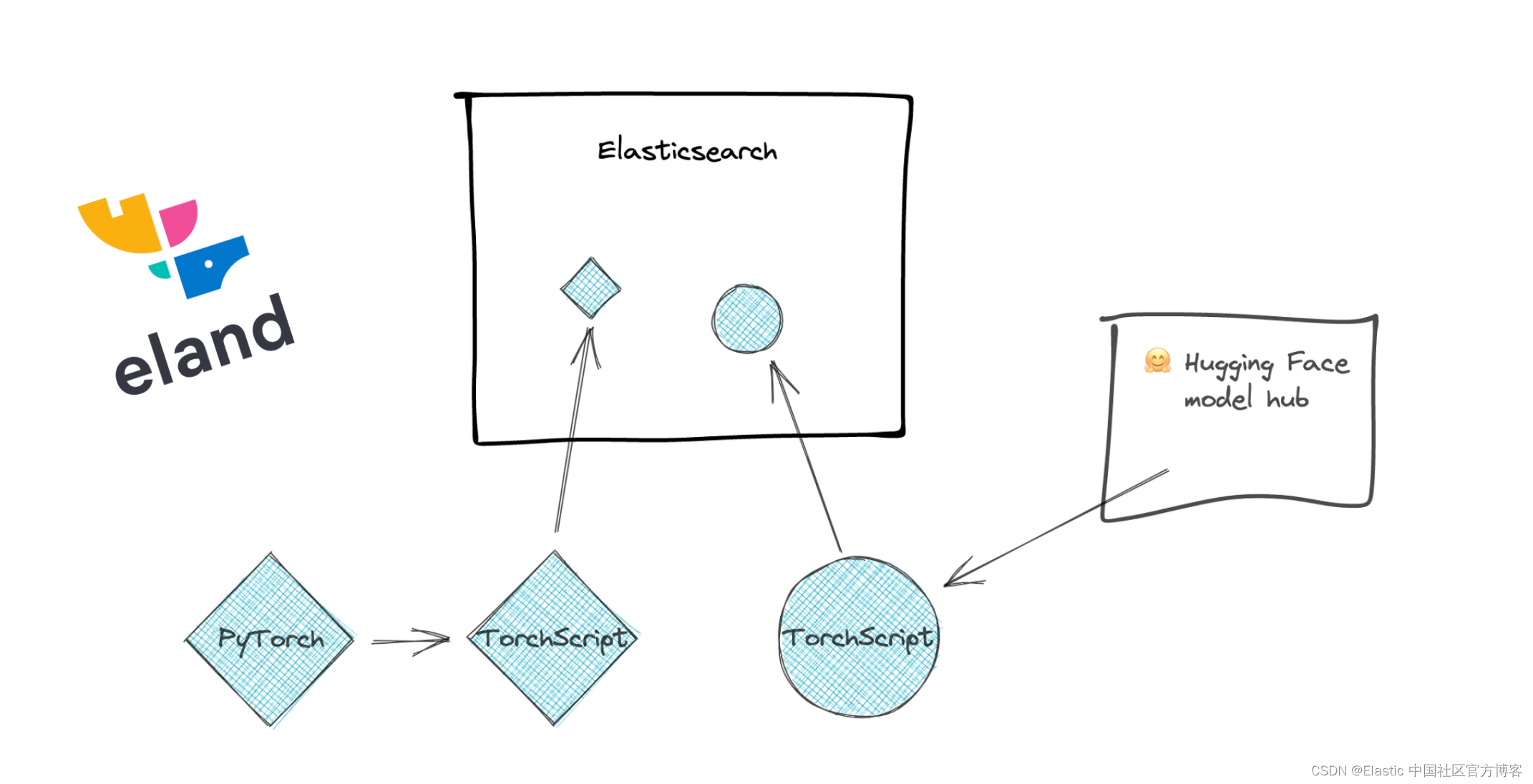 为了使这一切成为可能,我们需要一个机器学习库来执行推理。在 Elasticsearch 中添加对 PyTorch 的支持需要使用原生库 libtorch,它支持 PyTorch,并且仅支持已导出或保存为 TorchScript 表示的 PyTorch 模型。这是 libtorch 需要的模型的表示,它将允许 Elasticsearch 避免运行 Python 解释器。