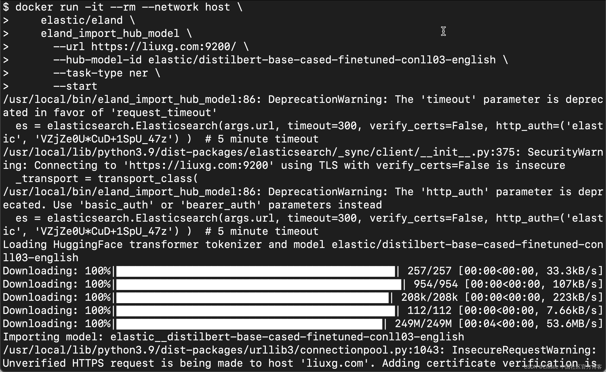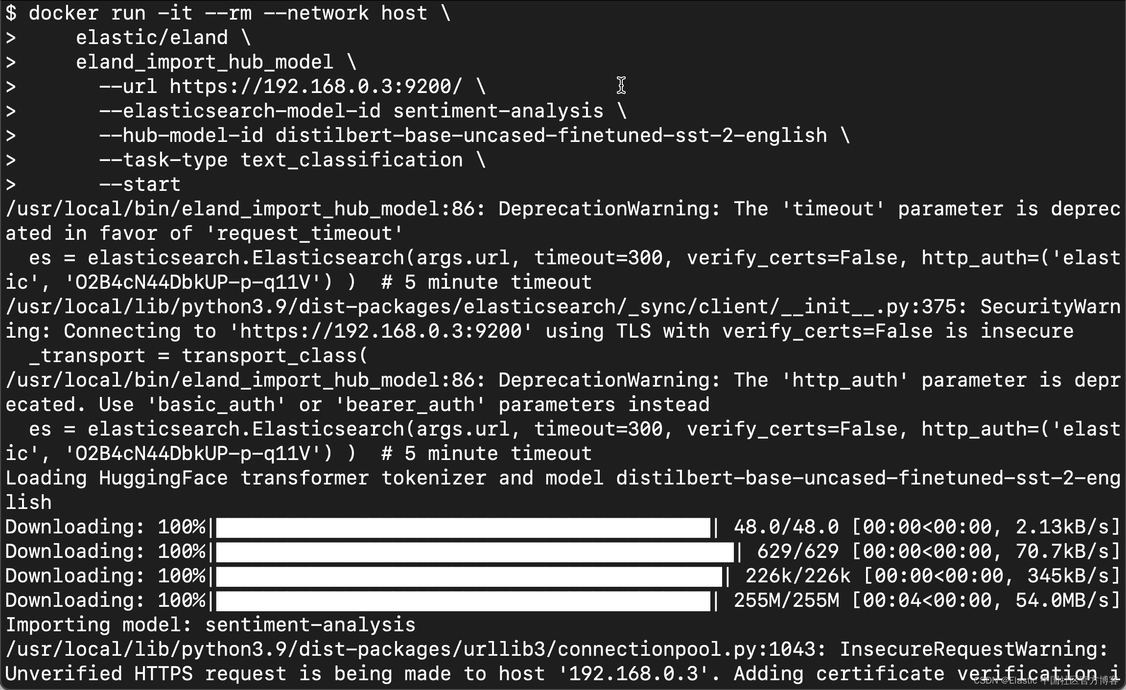 如果我们的 Elasticsearch 位于 https://192.168.0.3:9200,那么我们可以使用如下的命令来执行: