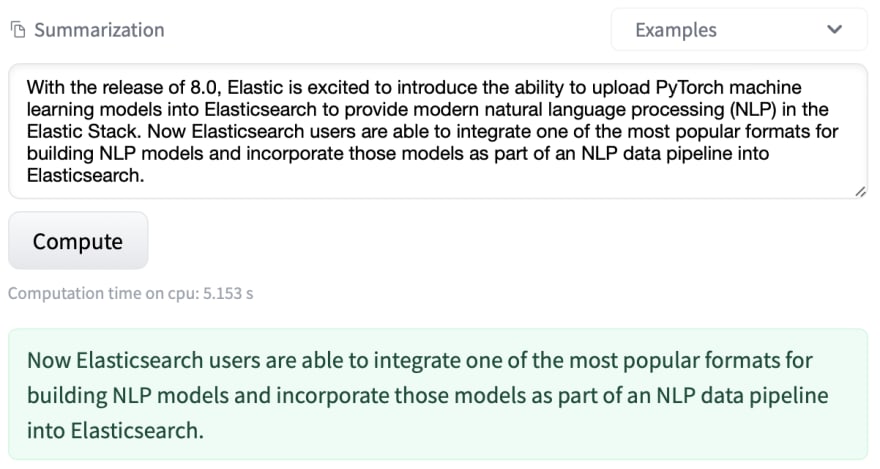 对 PyTorch 模型的推理调用可以分布在集群周围,并且可以允许用户在未来根据负载进行扩展。通过不移动数据并针对基于 CPU 的推理优化云虚拟机,可以提高性能。通过在 Elasticsearch 中整合 NLP 模型,我们可以将数据保存在一个整体集中、安全的网络中,同时考虑到数据隐私和合规性。通用基础设施、查询性能和数据隐私都可以通过在 Elasticsearch 中整合 NLP 模型得到增强。