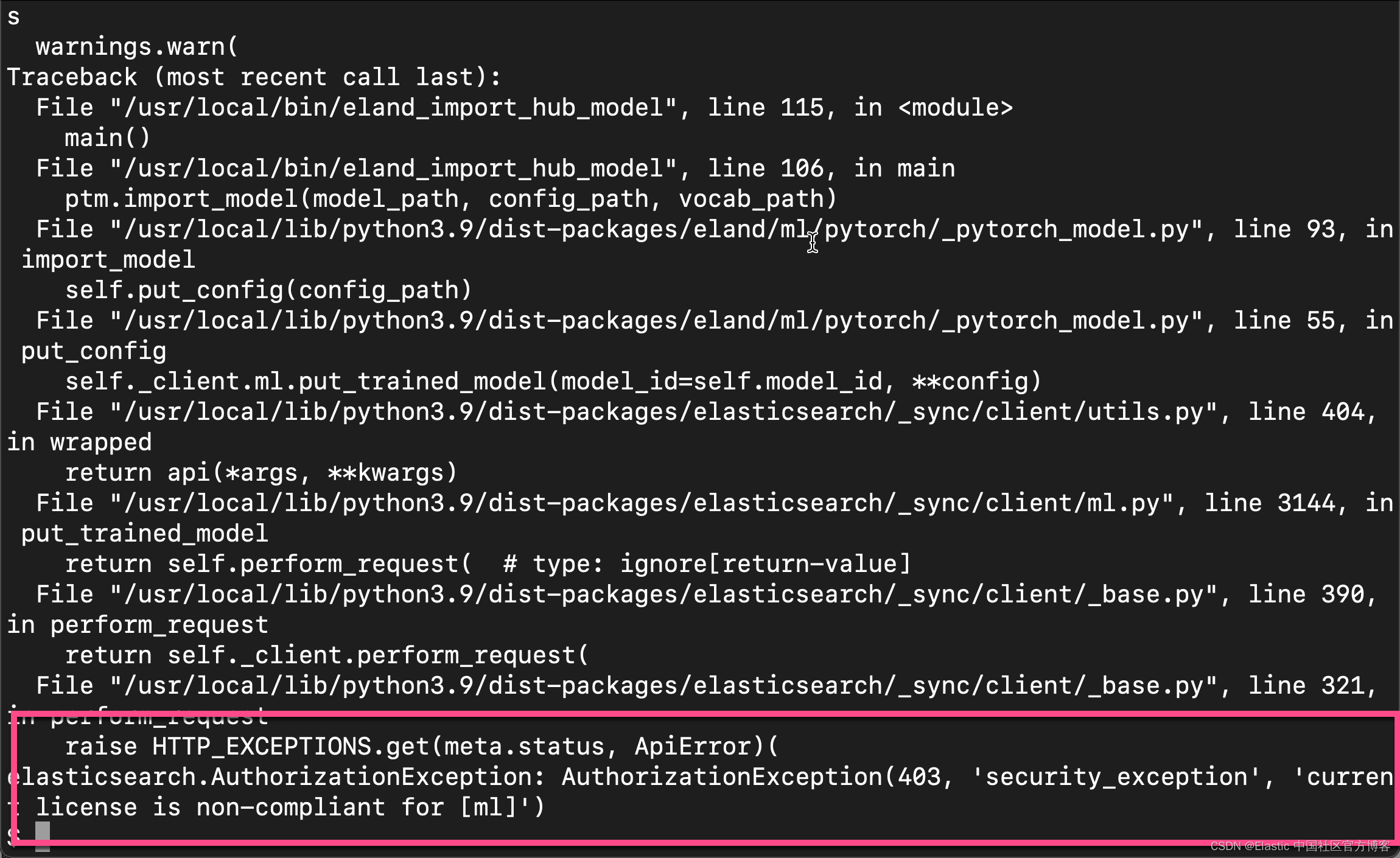 如果我们不启动白金版试用,我们在下面启动 docker 上传模型时,可能看的如下的错误信息: