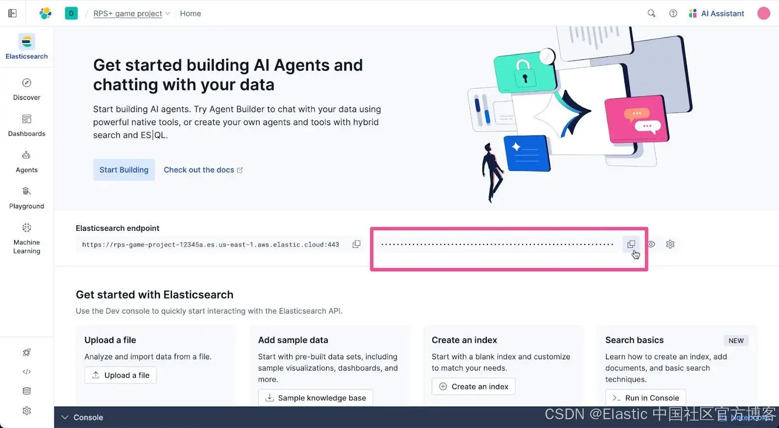 返回 Elastic Agent Builder,我们可以在这里获取所需的两个值。