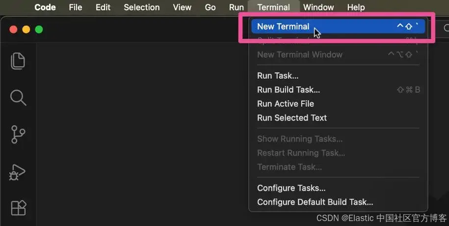 现在回到 Visual Studio Code,在 .env 文件中粘贴 API Key,替换 <YOUR-ELASTIC-API-KEY> 占位符文本。你的 .env 文件应类似如下: