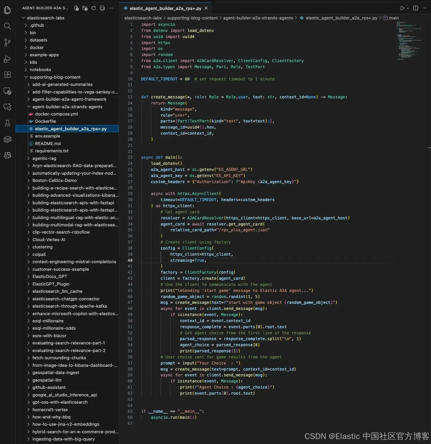 Elastic Agent Builder 让构建与数据连接的 AI agent 变得简单。我们将在这篇博客中向你展示如何做到这一点。让我们一起走过使用一个访问存储在 Elastic 中的数据的 MCP 工具来创建一个 agent 所需的所有步骤。然后,我们将使用 Strands Agents SDK 及其 Agent2Agent ( A2A ) 功能来运行该 agent。Strands Agents SDK是一个多 agent 的 AI 开发平台,你可以用它以足够少的代码来构建 agentic 应用,从而确保你获得想要的结果。