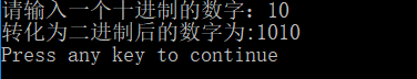 2、设计算法并写出代码,实现将一个十进制数转换成二进制数。
