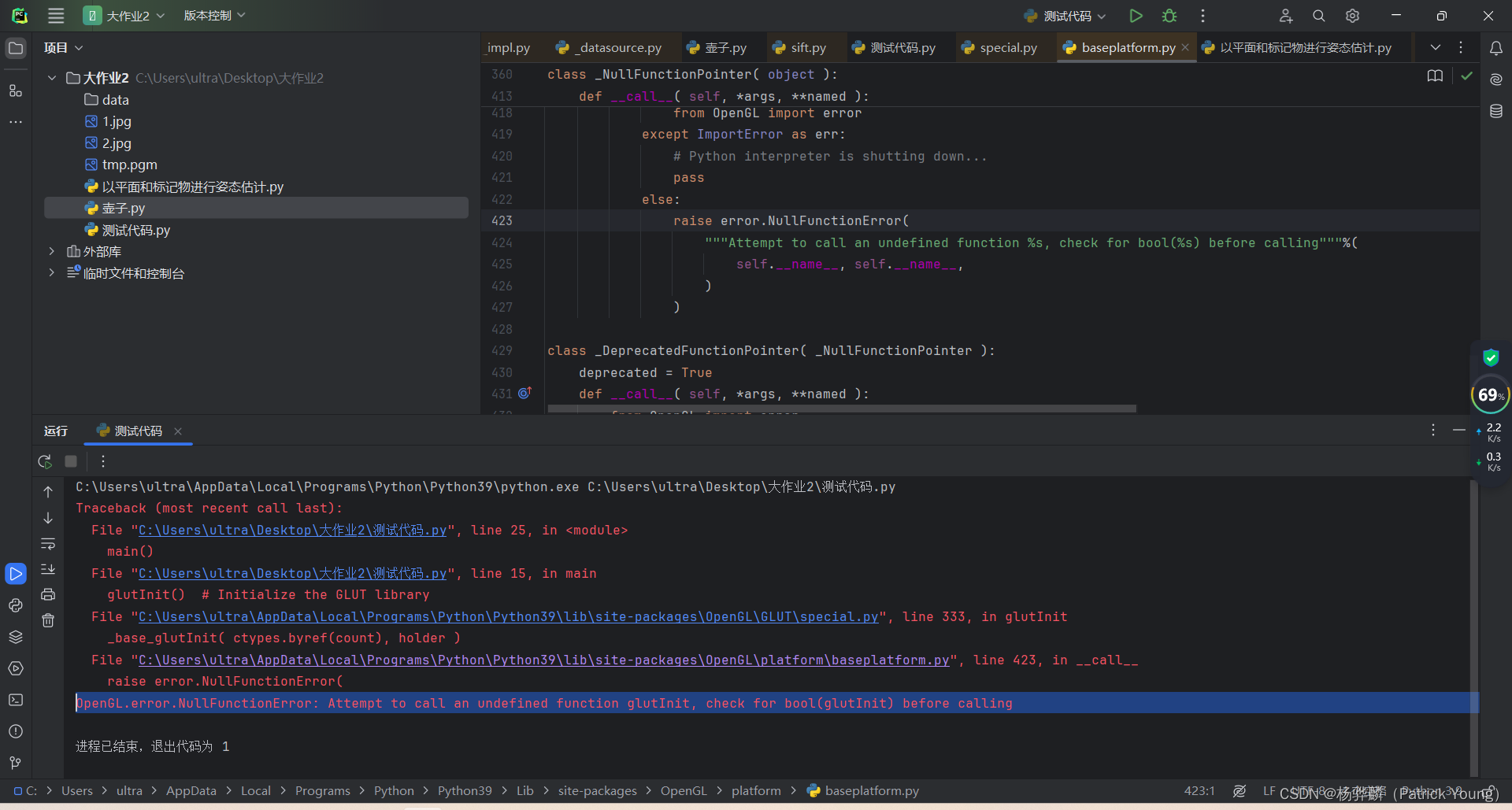 通过pip安装pip install PyOpenGL安装PyOpenGL模块后 运行出现的问题 能够正确import 但就是执行代码会报错