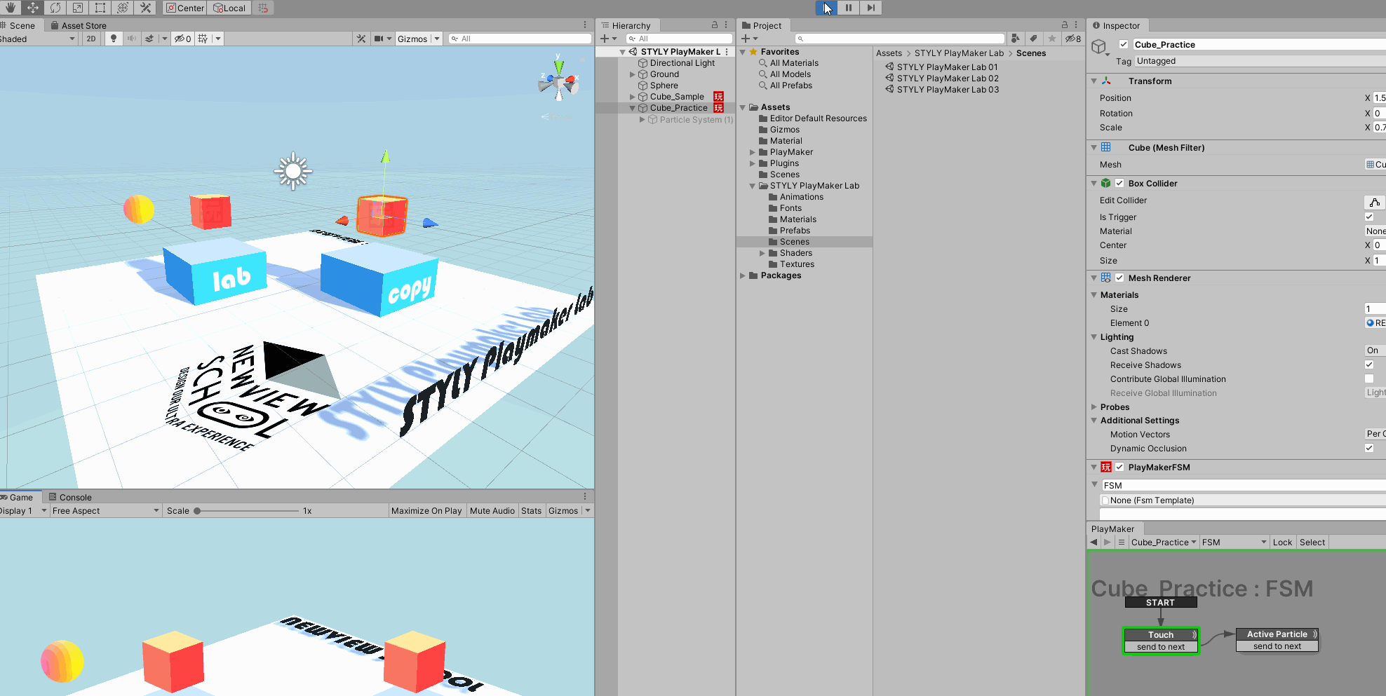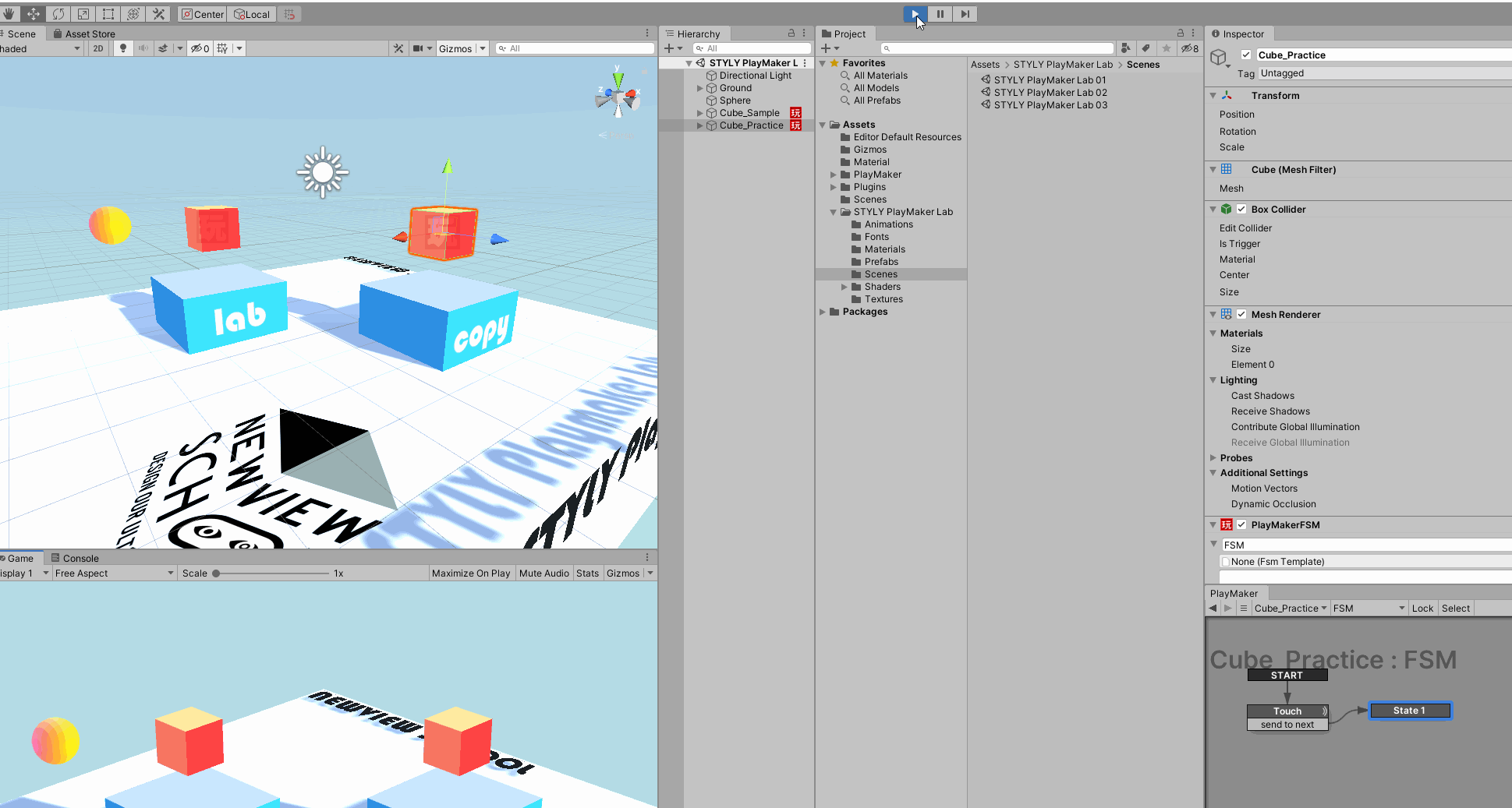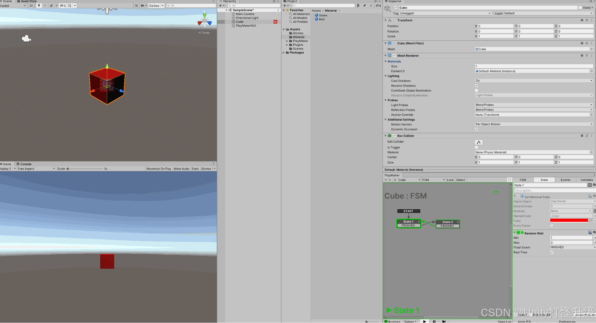 在层次结构中选择 01_Sample 的 (子对象) 01_Cube (Playmaker)。
