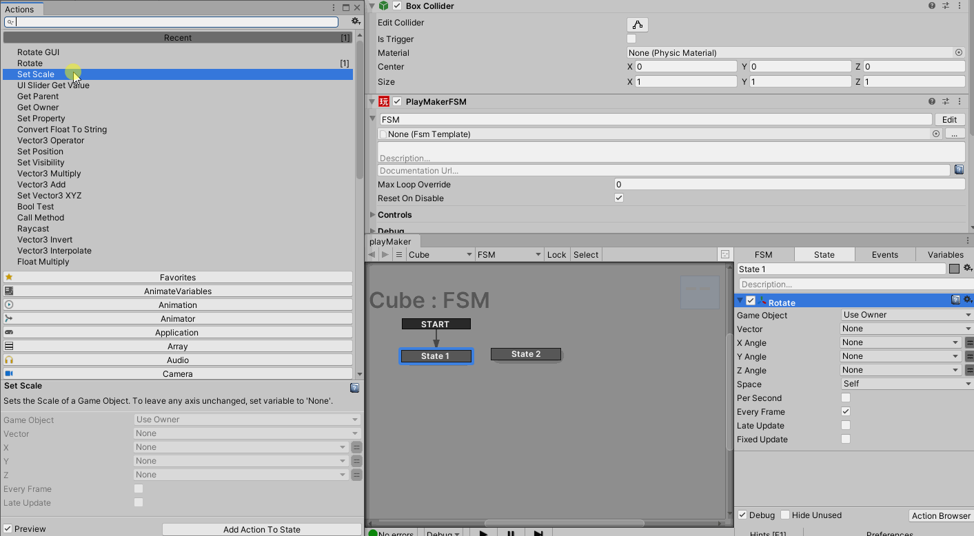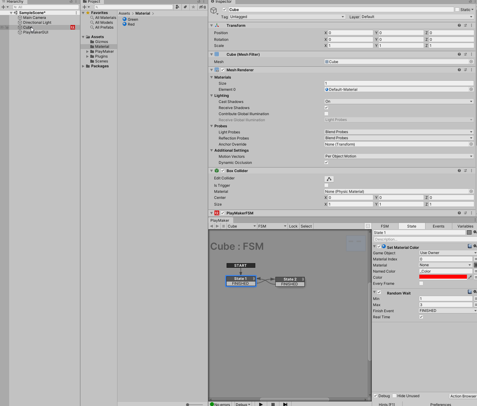 我们还将向您展示如何从检查器添加 PlayMakerFSM。