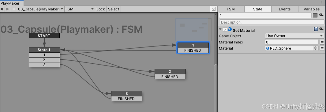 在 State1 中使用 Random Event 过渡到 1/2/3 之一。