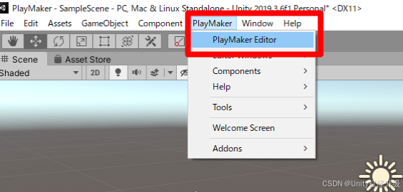 在左上角的菜单中,单击 PlayMaker > PlayMaker 编辑器。