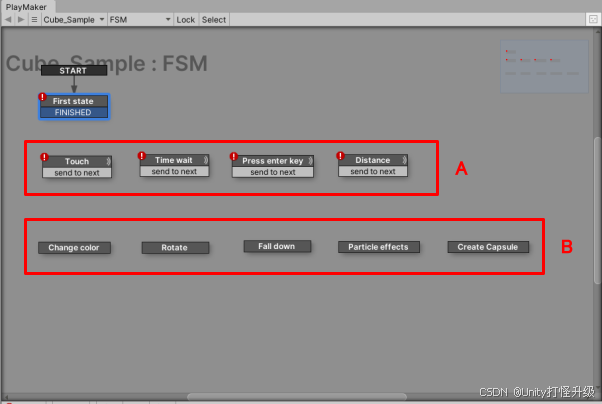 从本质上讲,PlayMaker 是一种通过有限状态机 (FSM) 操纵 Unity 的工具,FSM 是一种将复杂行为分解为各个状态的模型。