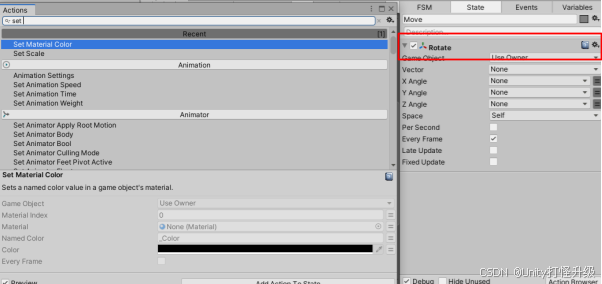 PlayMaker 提供了数十个 Actions,可以组合这些 Action 来创建各种逻辑。