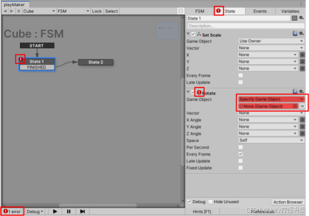 PlayMaker 的基本概念是“State”、“Event”和“Transition”的组合。