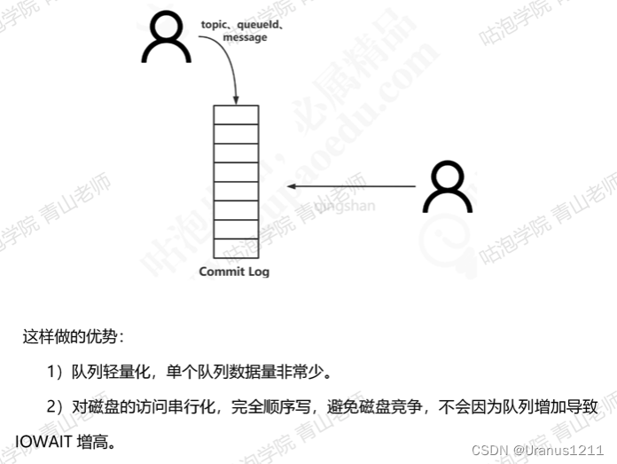 所有的topic 消息全部写在同一个文件里面,集中型存储,保证绝对的顺序写