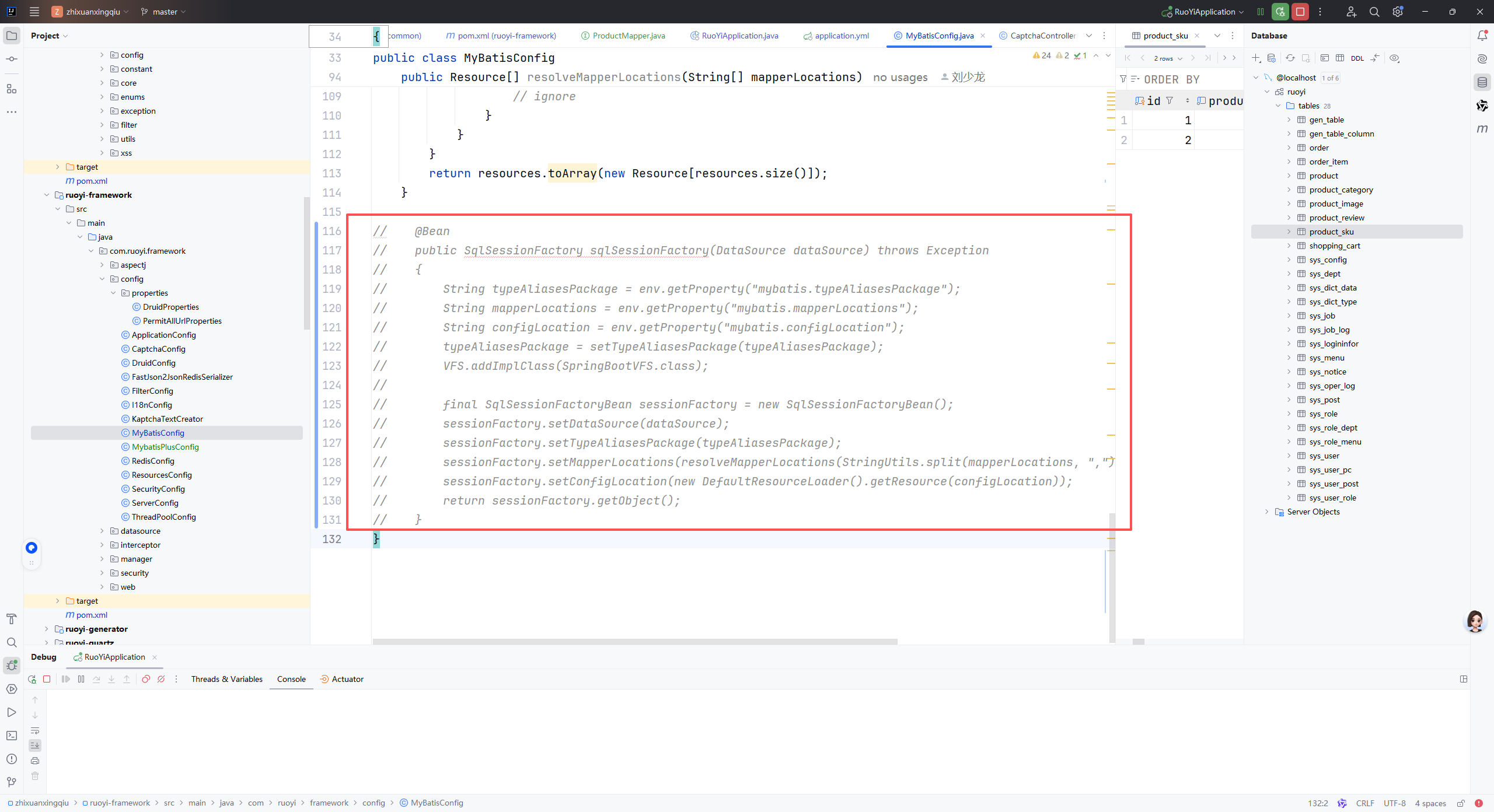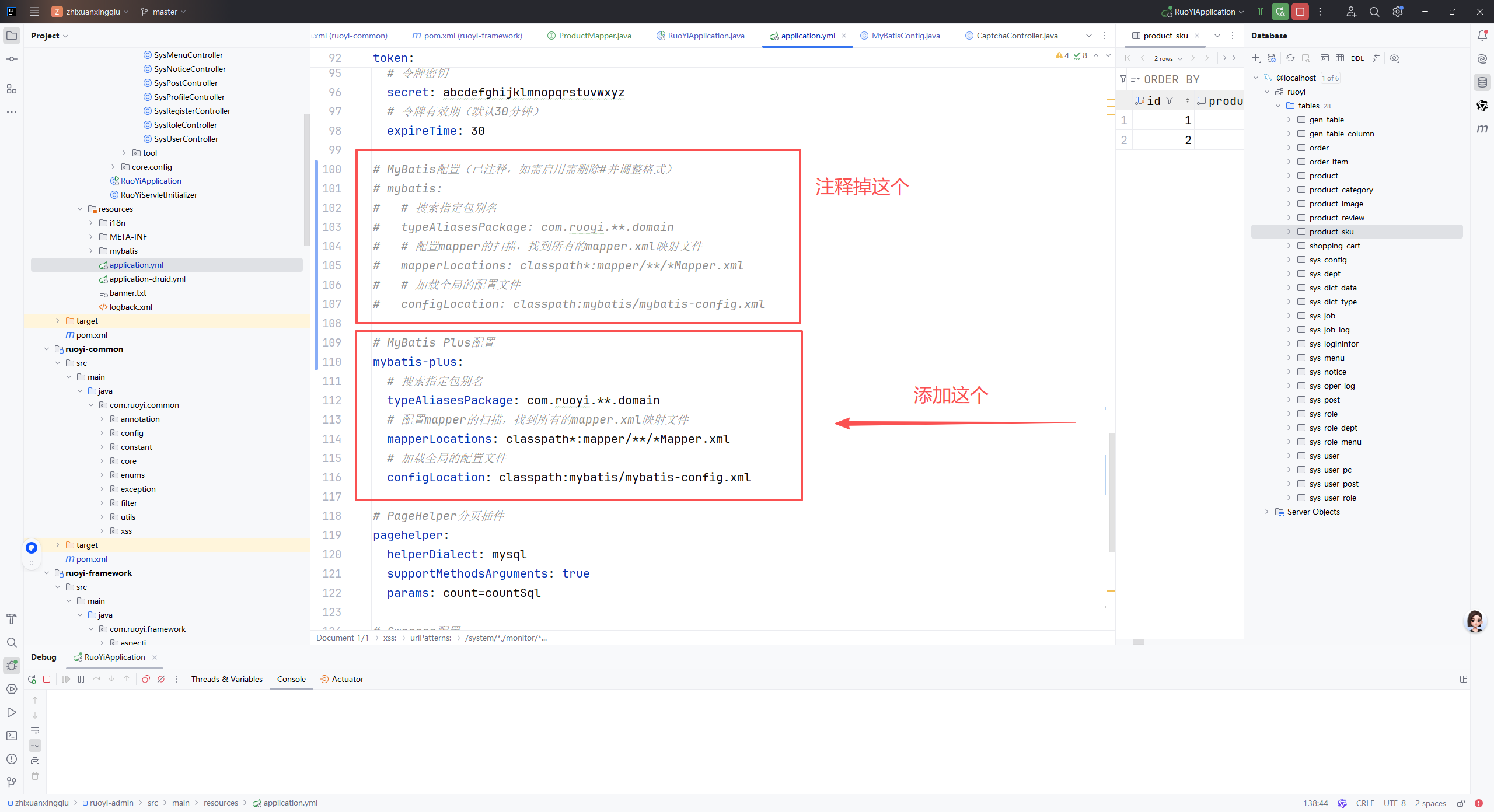 1、注释掉MyBatis配置,新增MyBatis-Puls配置