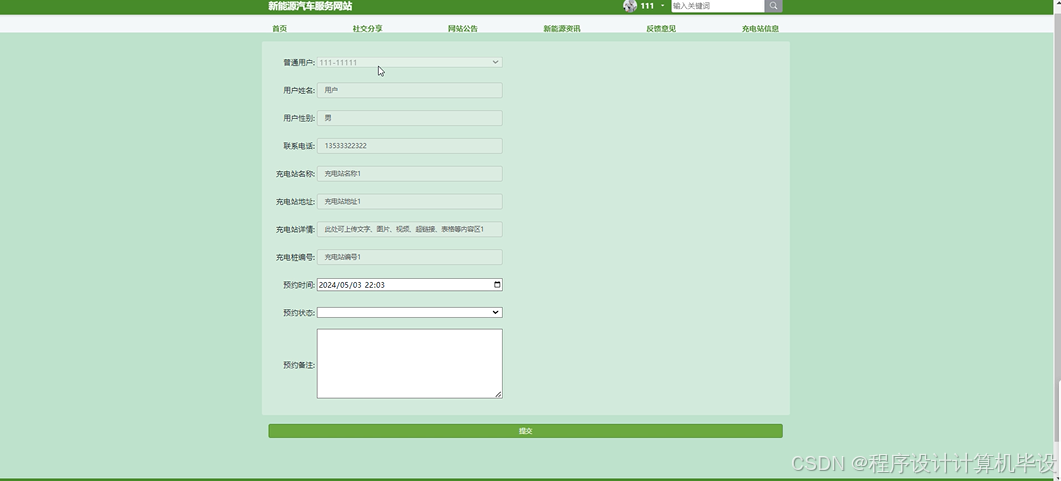 | 预期结果 | 提交以后,页面首页会显示新的充电站信息 |