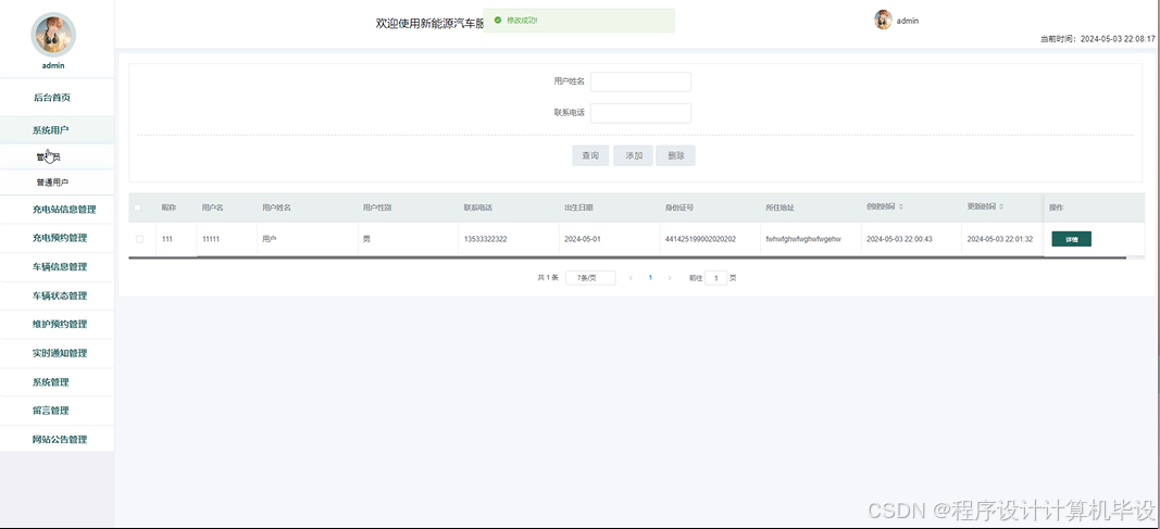 按照基于springboot的新能源汽车服务网站的角色,系统划分为了普通用户模块和管理员模块这两大部分。