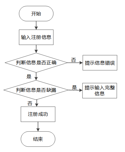 未有账号的用户可进入注册界面进行注册操作,填写注册表格,包括用户名、密码、电子邮件等必要信息。后台系统验证并保存用户提交的信息。分配唯一用户标识符。注册成功后,用户可以使用账号密码进行登录。用户注册流程图如下图所示。