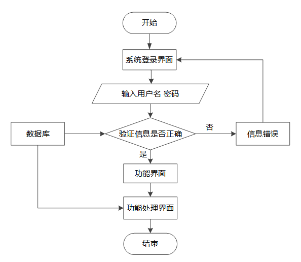 用户访问系统,进入登录页面,入其用户名和密码,后端服务接收登录请求,验证用户提供的用户名和密码是否匹配数据库中存储的信息,验证通过即可登录成功。登录流程图如下图所示。
