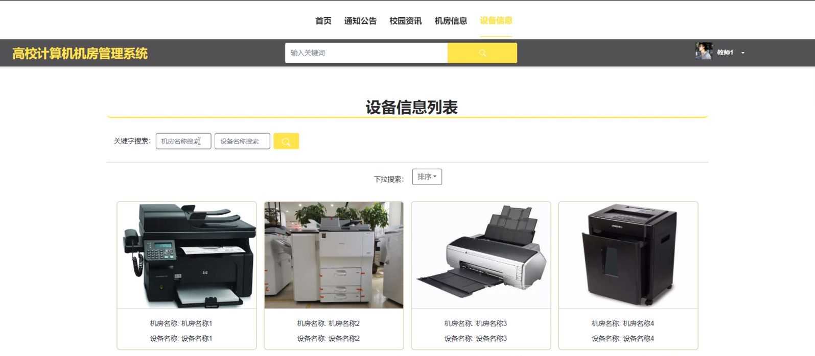 设备信息:设备信息模块允许教师查看特定机房内所有设备的详细信息。教师可以了解设备的规格、使用状态等,有助于更好地规划课程和实验。