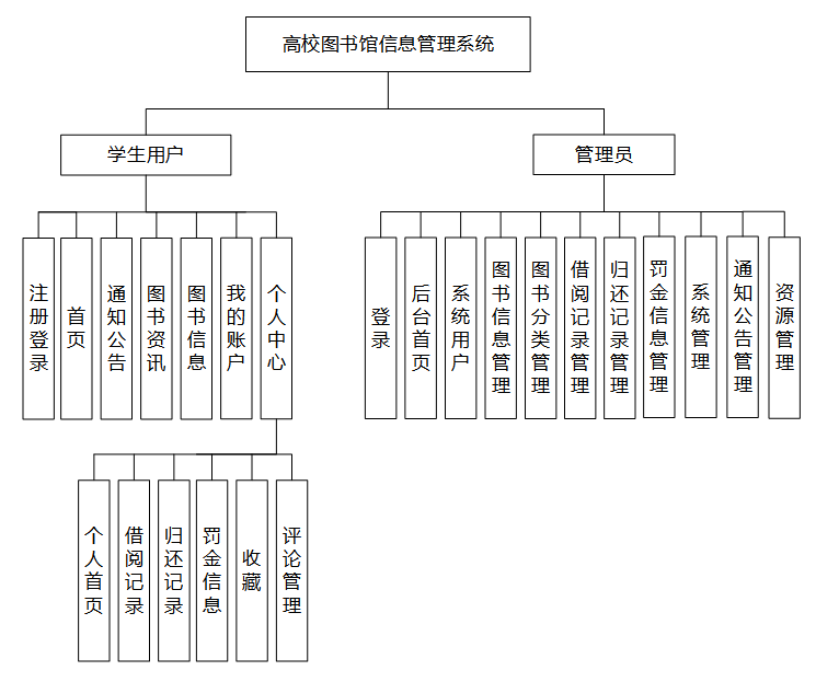 通过对应的功能做了需求分析以后该高校图书馆信息管理系统各角色主要包括的功能说明如下: