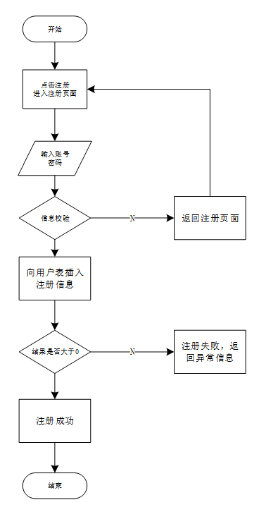 注册的过程,第一部分是账号的注册,第二部分是信息完善。在业务开展过程中,管理员可对用户信息进行修改等管理操作,注册流程如图3-3用户注册流程图所示。