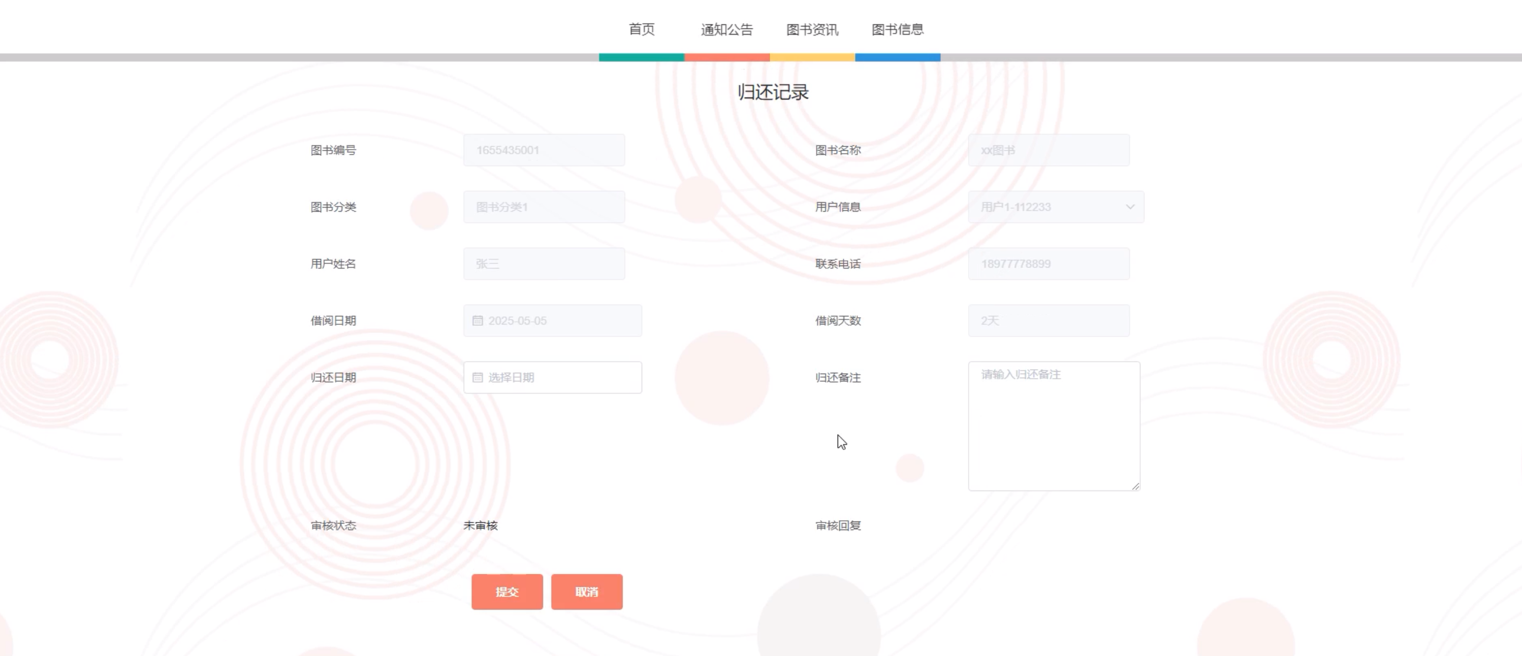 The system realizes a series of functions such as library management, user management, borrowing management, and information release, and supports administrators in the comprehensive management of books and information, ensuring the stability, scalability and efficiency of the system. Through this platform, the operations of both users and administrators have been greatly optimized and simplified, enhancing the intelligence and convenience of library information management.