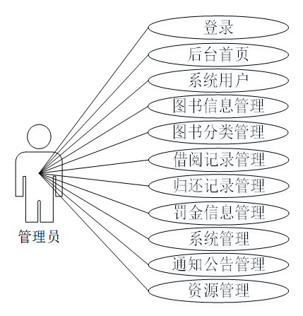高校图书馆信息管理系统管理员角色用例图如下所示。