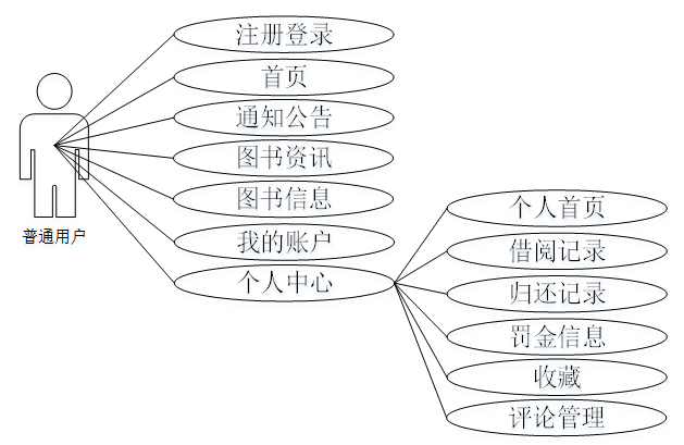 高校图书馆信息管理系统普通用户角色用例图如下所示。