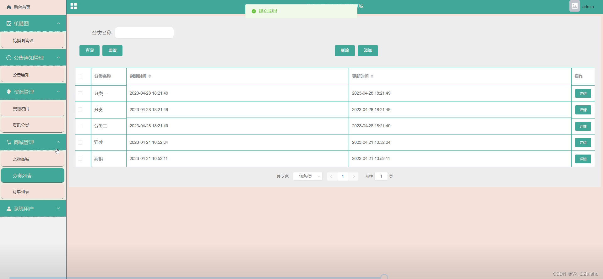 图 5-10宠物商城管理界面