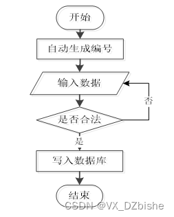 用户在添加信息时,信息编号自动生成,系统会对添加的信息进行验证,验证通过则添加至数据库,添加信息成功,反之添加失败。添加信息流程如图2-3所示。