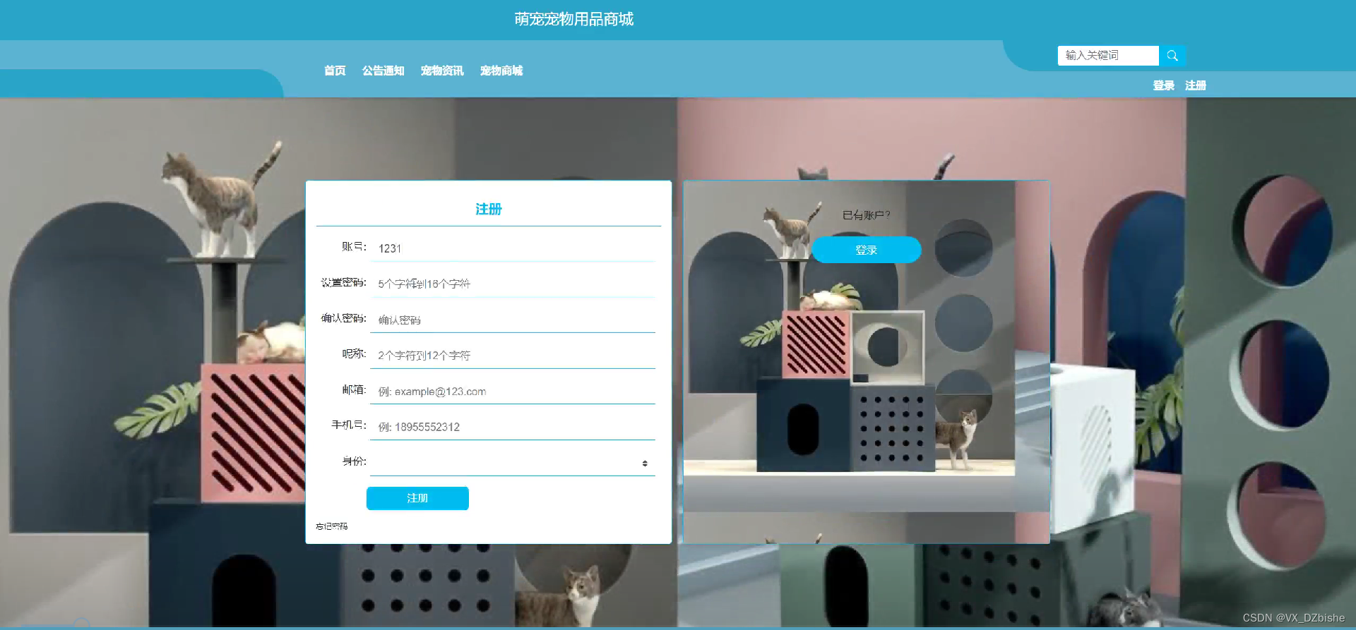 4.注册登录,宠物用品商城需要吸引客户,即通过注册来提高用户的存留率。