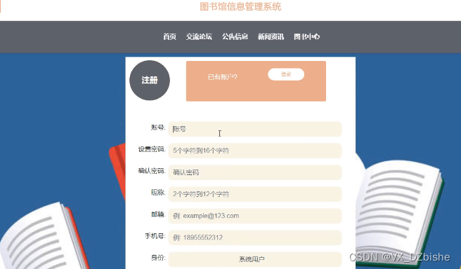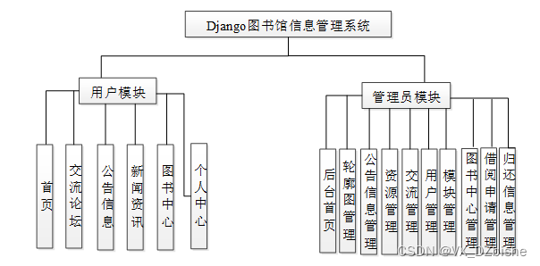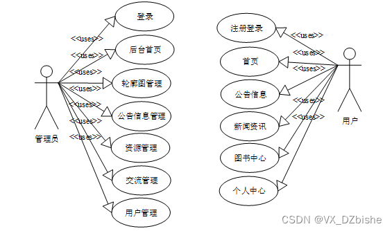 用户模块:个人资料管理、交流论坛、新闻资讯、图书中心、借阅申请、图书归还等。