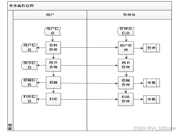 普通用户在系统前台后,数据库的借阅记录表生成借阅记录信息,管理员在图书借阅列表审核用户的借阅记录,审核通过,用户借阅成功,否则借阅失败。
