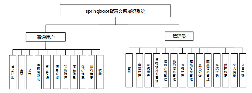 按照智慧文博展览系统的角色,划分为了用户模块、管理员模块这两大部分。