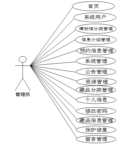 管理员是维护整个智慧文博展览系统中所有数据信息的。管理员角色用例如图2-6所示。