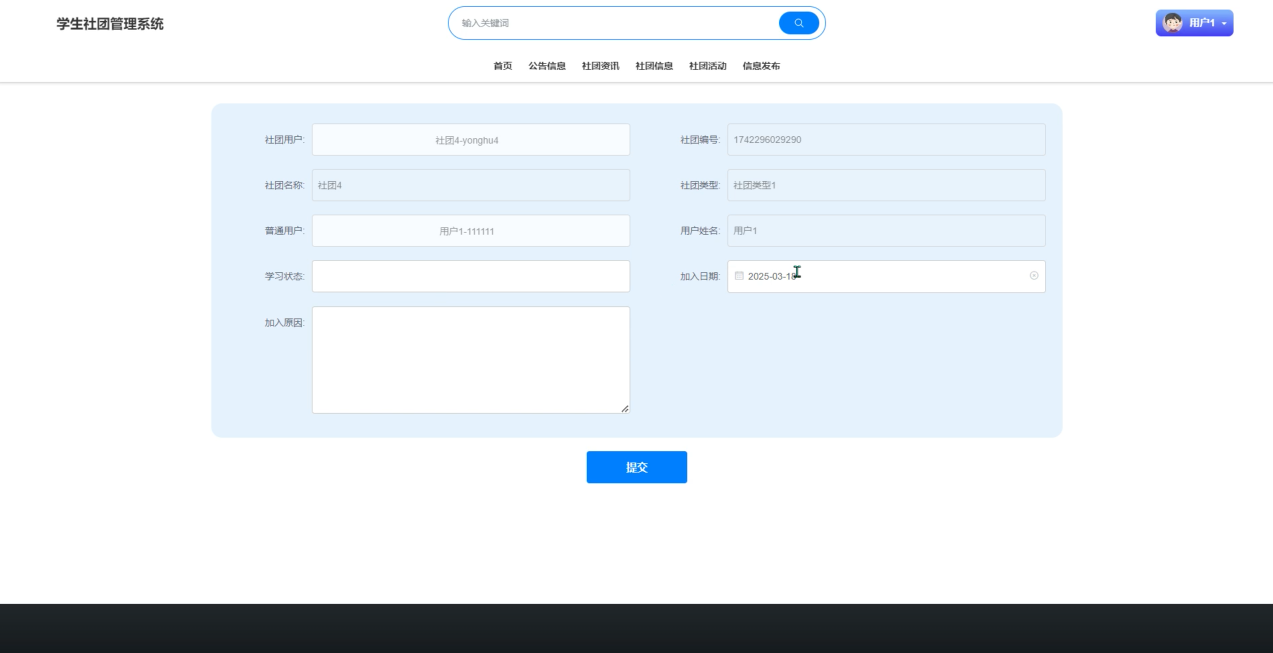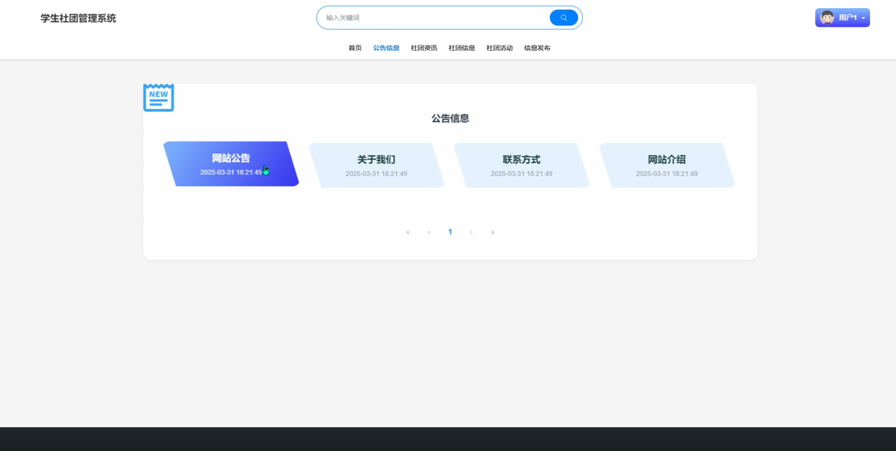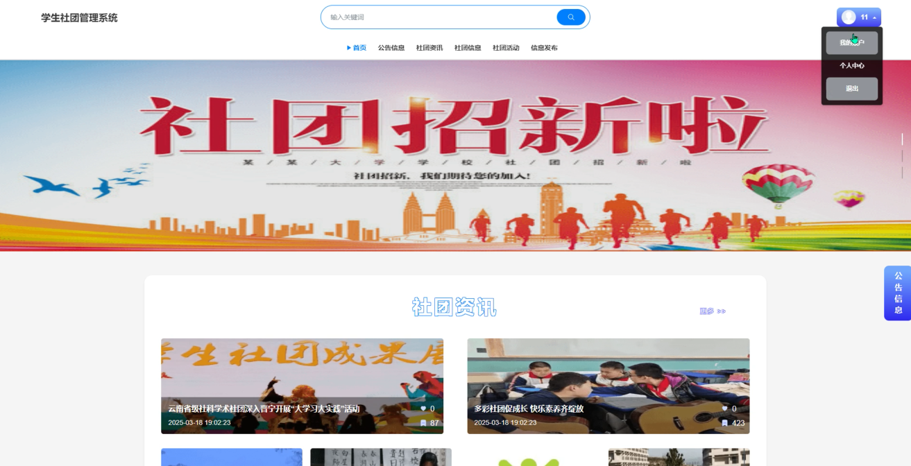 首页:展示最新公告和热门社团活动,提供快速访问入口。