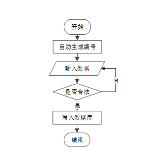 用户成功登入系统后就能够实现增加数据的操作,增加数据的编号是特定的,系统生成,用户不能随意填写,除了编号以外,其他增加信息用户自己填写,填写后的信息经过系统验证,验证合法通过就显示增加数据成功了,相反的话,就没有增加成功,图3-1显示的就是在增加数据时的流程。
