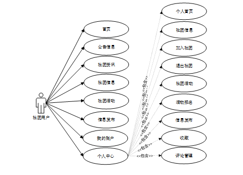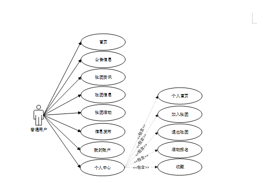 个人中心:包括个人首页、加入社团申请、退出社团、活动报名、收藏喜爱的内容。