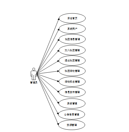 系统用例分析是对学生社团管理系统中各个功能模块的用户需求和行为进行分析,以识别和描述不同的用户用例。通过系统用例分析,可以深入了解用户在系统上的操作流程和交互方式,为系统设计和开发提供指导,并确保系统能够满足用户的需求和期望。