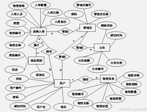 概念模型的设计是为了抽象真实世界的信息,并对信息世界进行建模。它是数据库设计的强大工具。数据库概念模型设计可以通过E-R图描述现实世界的概念模型。系统的E-R图显示了系统中实体之间的链接。而且Mysql数据库是自我保护能力比较强的数据库,下图主要是对数据库实体的E-R图: