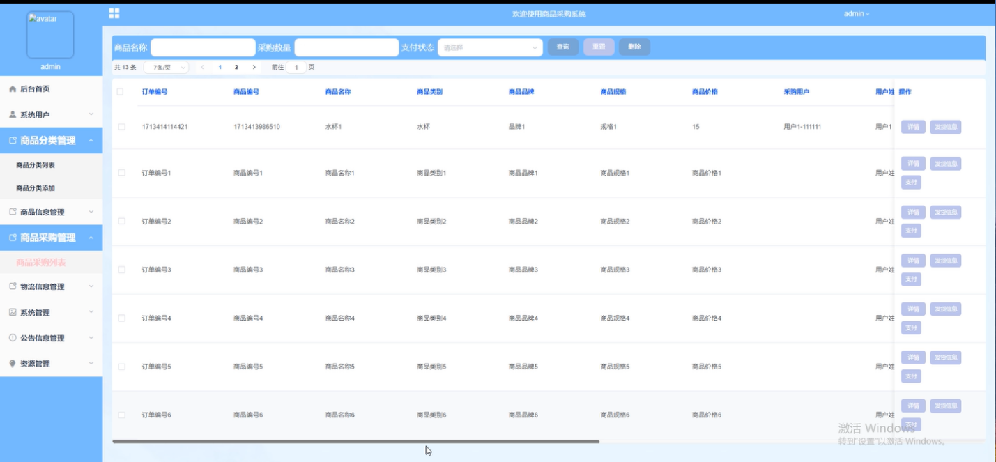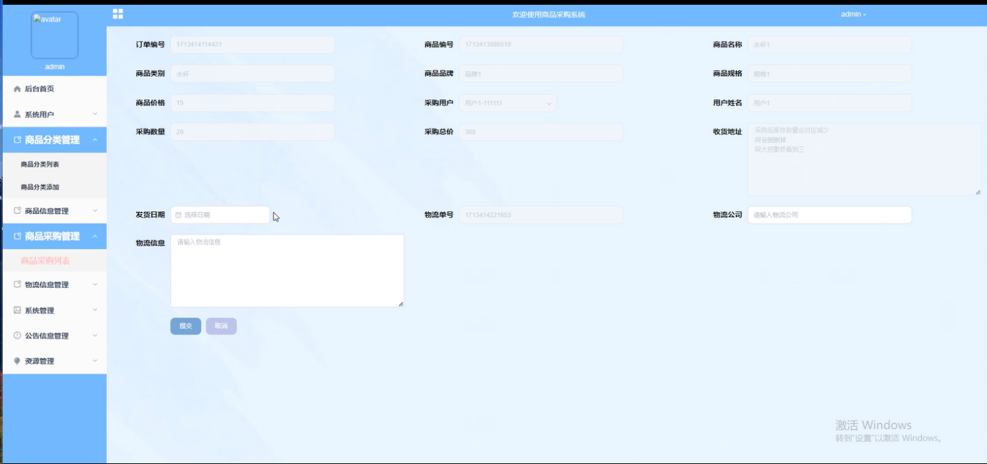 商品采购: 用户可以进行商品采购操作,选择商品、提交订单等。