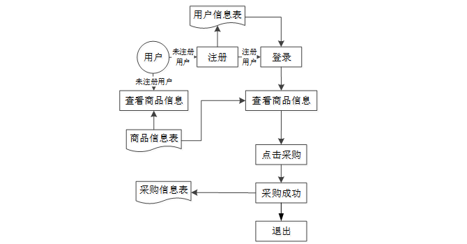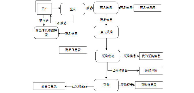 商品采购系统的主要的目的之一就是实现线上采购,图2-1就是系统的数据流图。